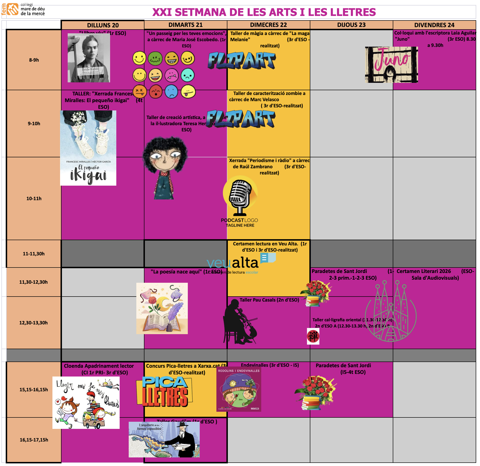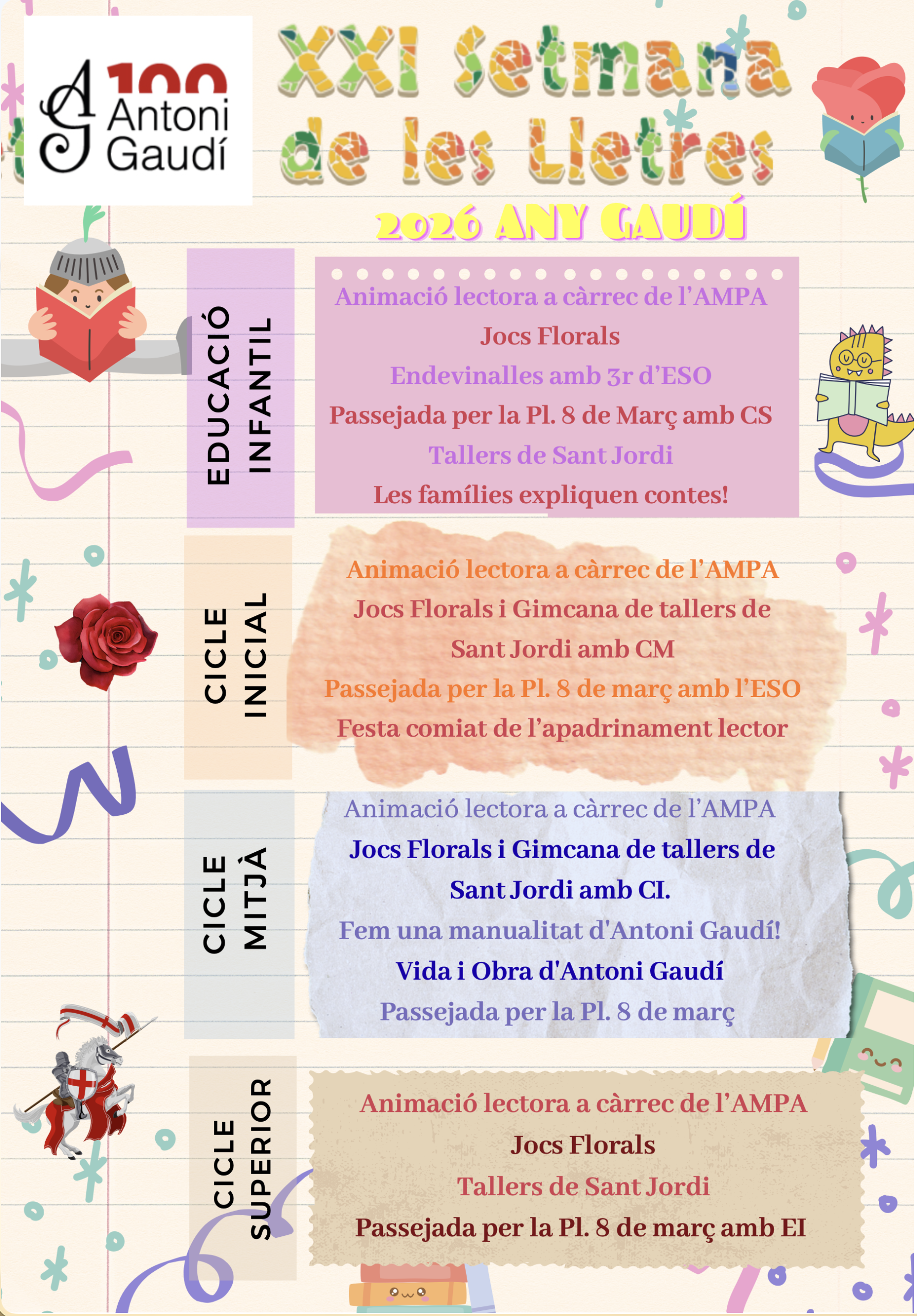 Calendari d'activitats INFANTIL I PRIMÀRIA